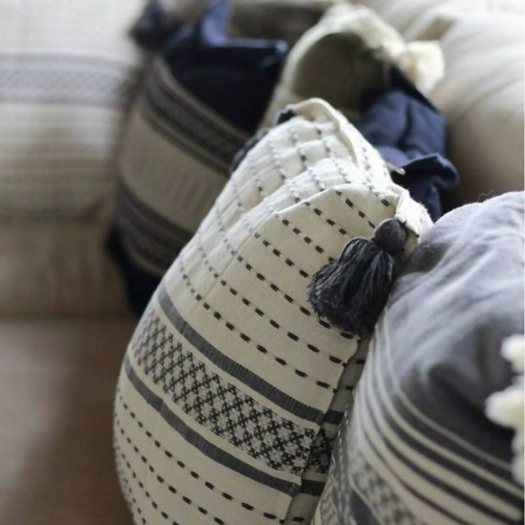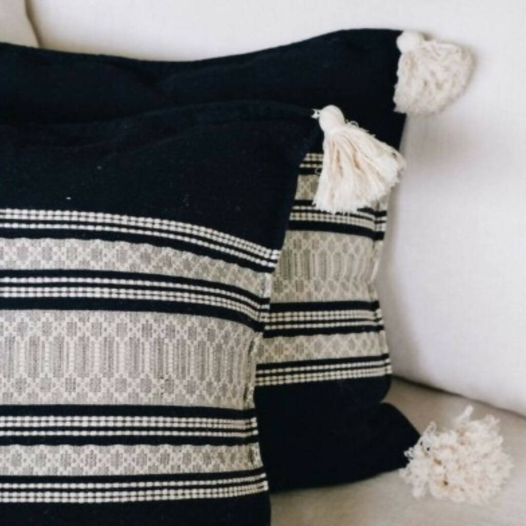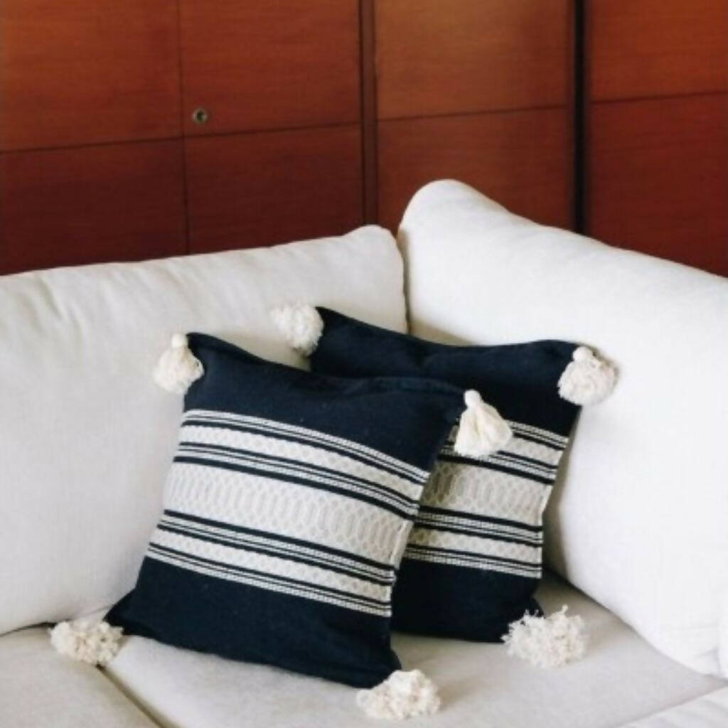 TULA DE ALLENDE CUSHION COVERS LOOM WITH POM-POMS