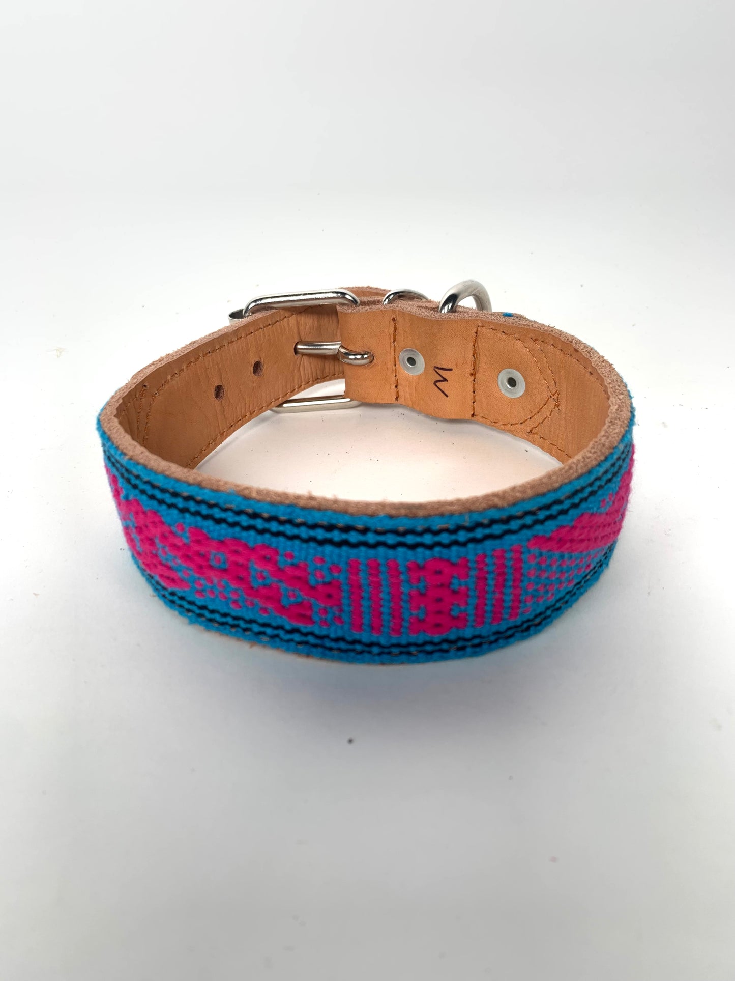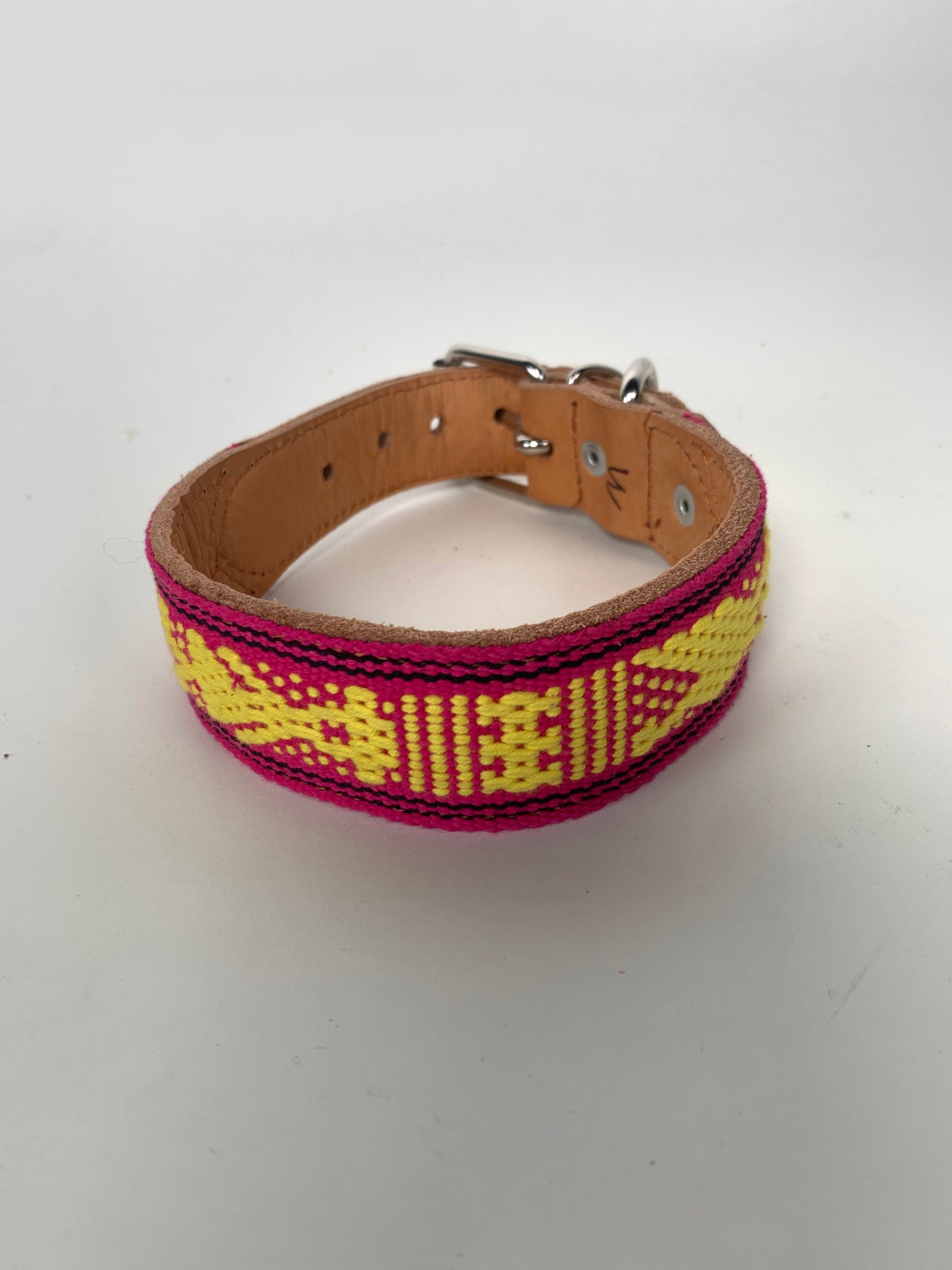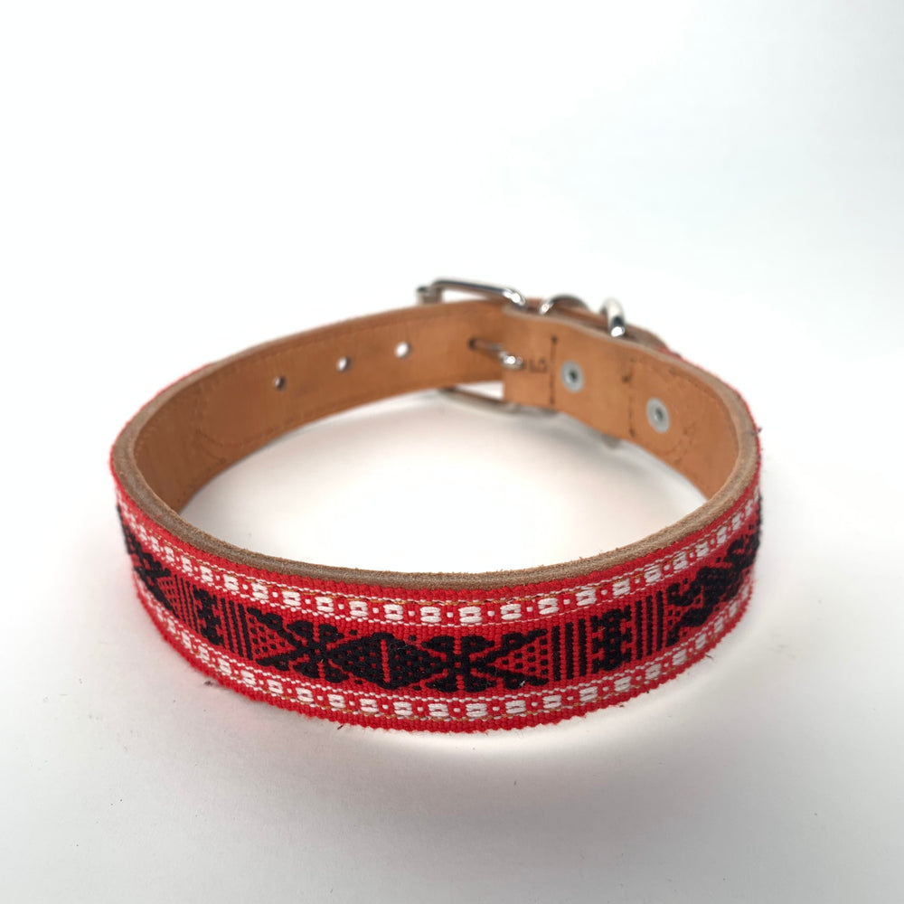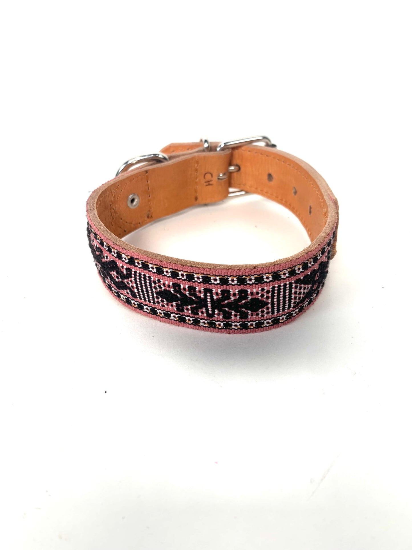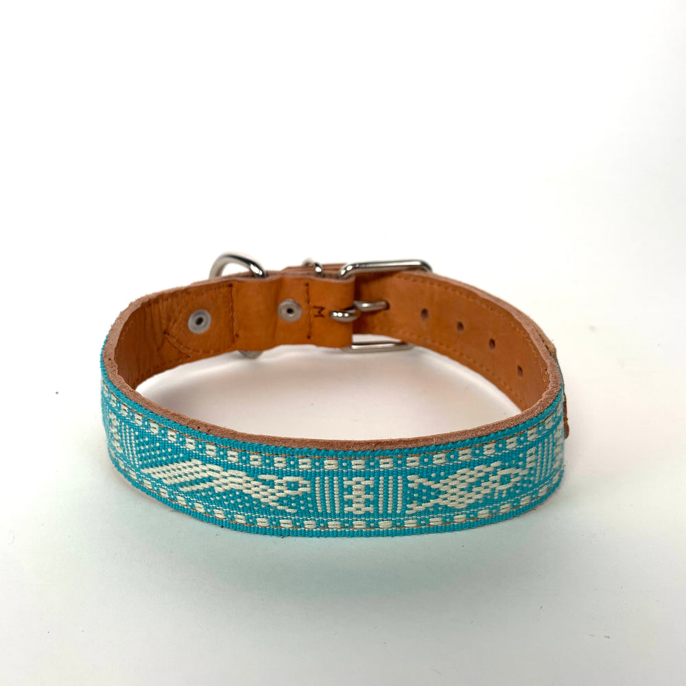 These dog collars and leashes by Ina Chiisi were created in the Valle de Oaxaca, this technique is known as "telar de cintura" and its primary is cotton, which is dyed by natural extracts from plants like nopal, flowers, aloe vera; insects like the grana cochinilla, and fruits like the banana leaf, that the artisans extract and elaborate.