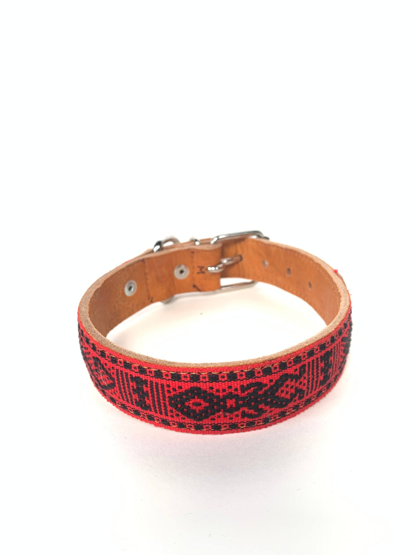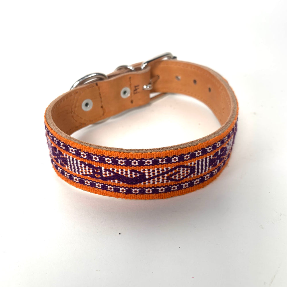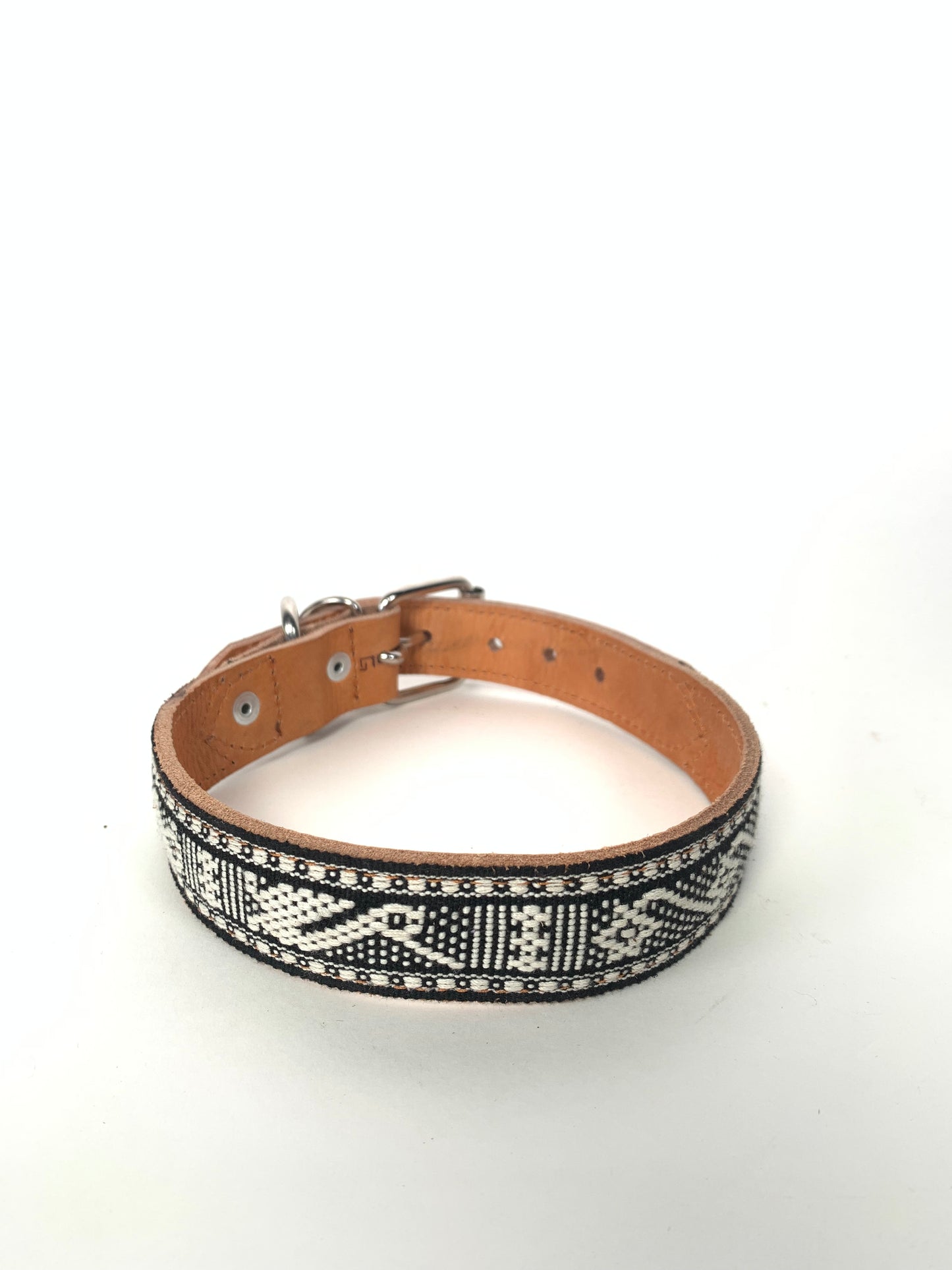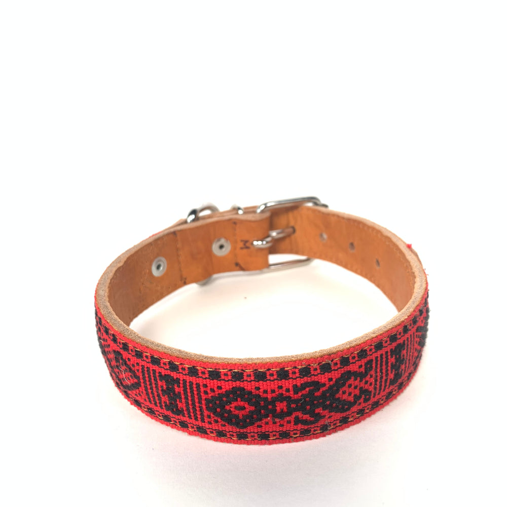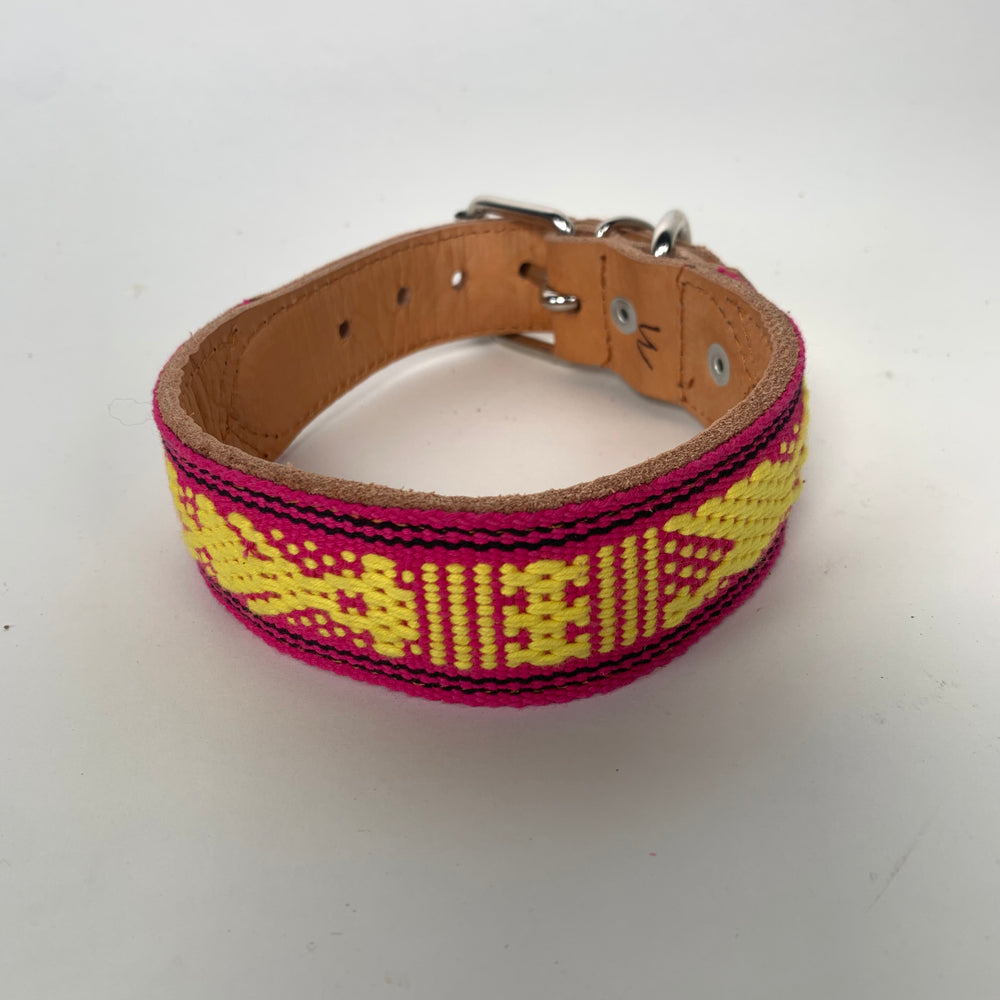 These dog collars and leashes by Ina Chiisi were created in the Valle de Oaxaca, this technique is known as "telar de cintura" and its primary is cotton, which is dyed by natural extracts from plants like nopal, flowers, aloe vera; insects like the grana cochinilla, and fruits like the banana leaf, that the artisans extract and elaborate.