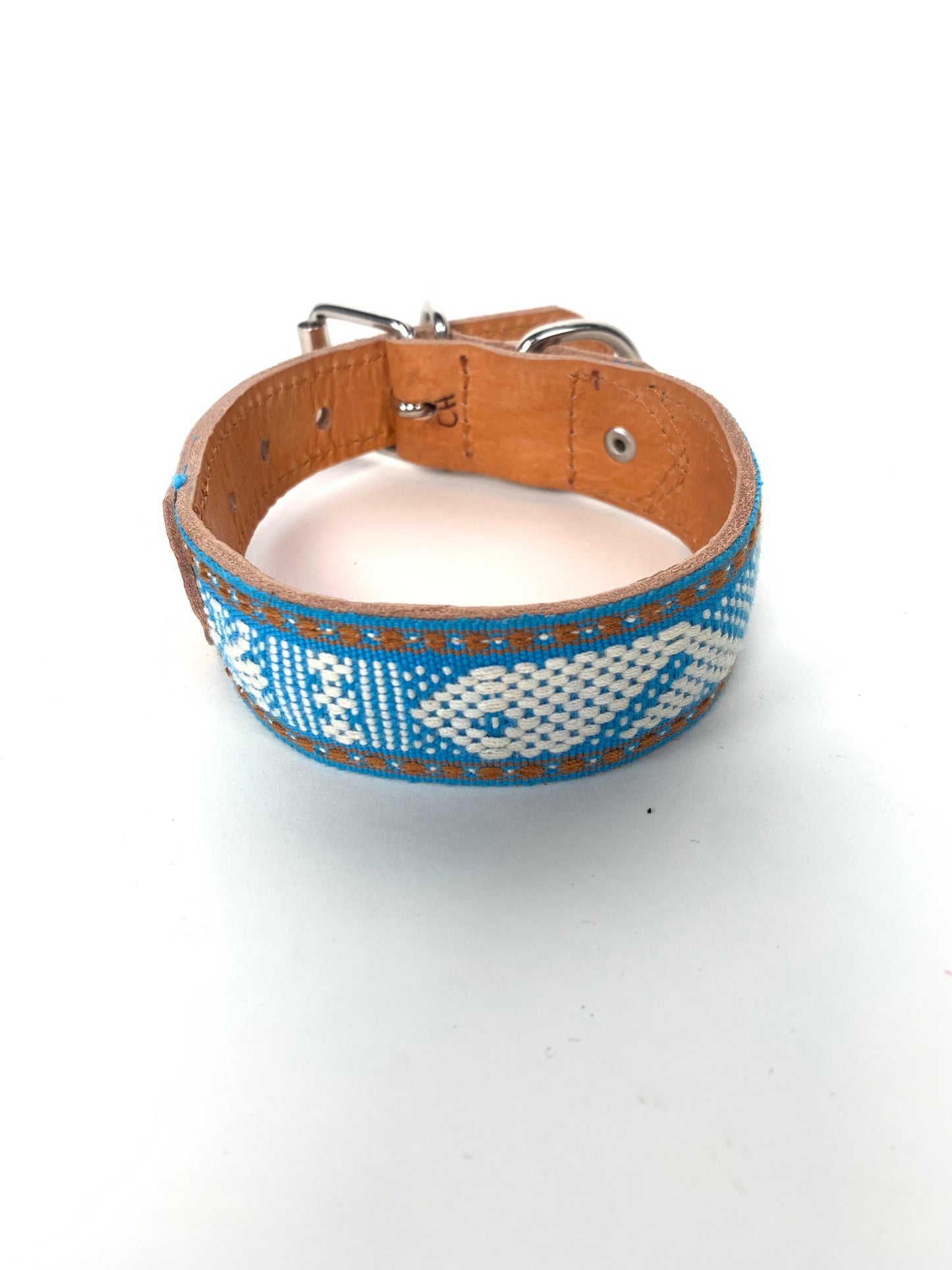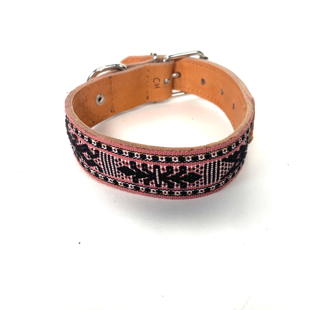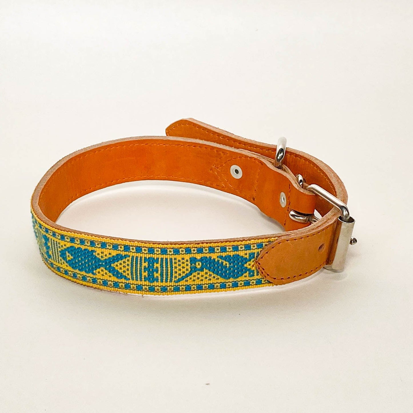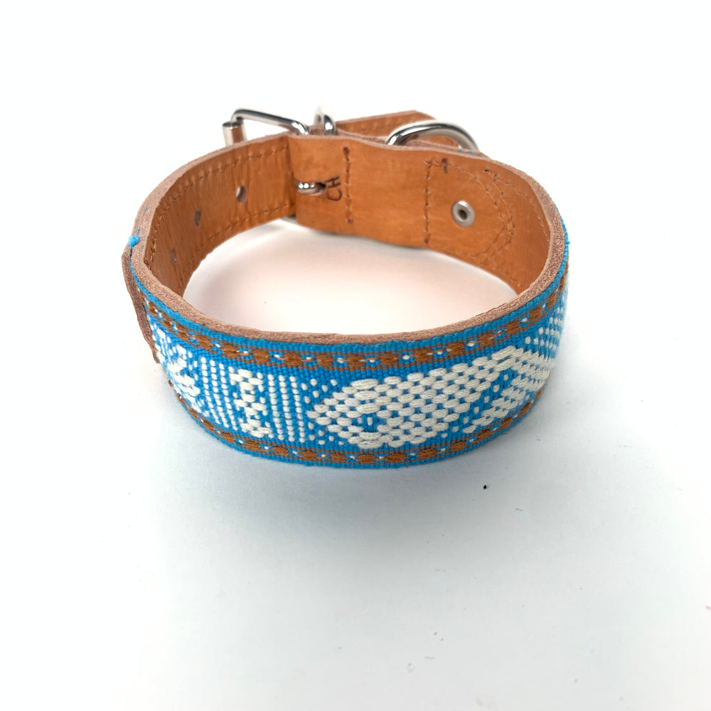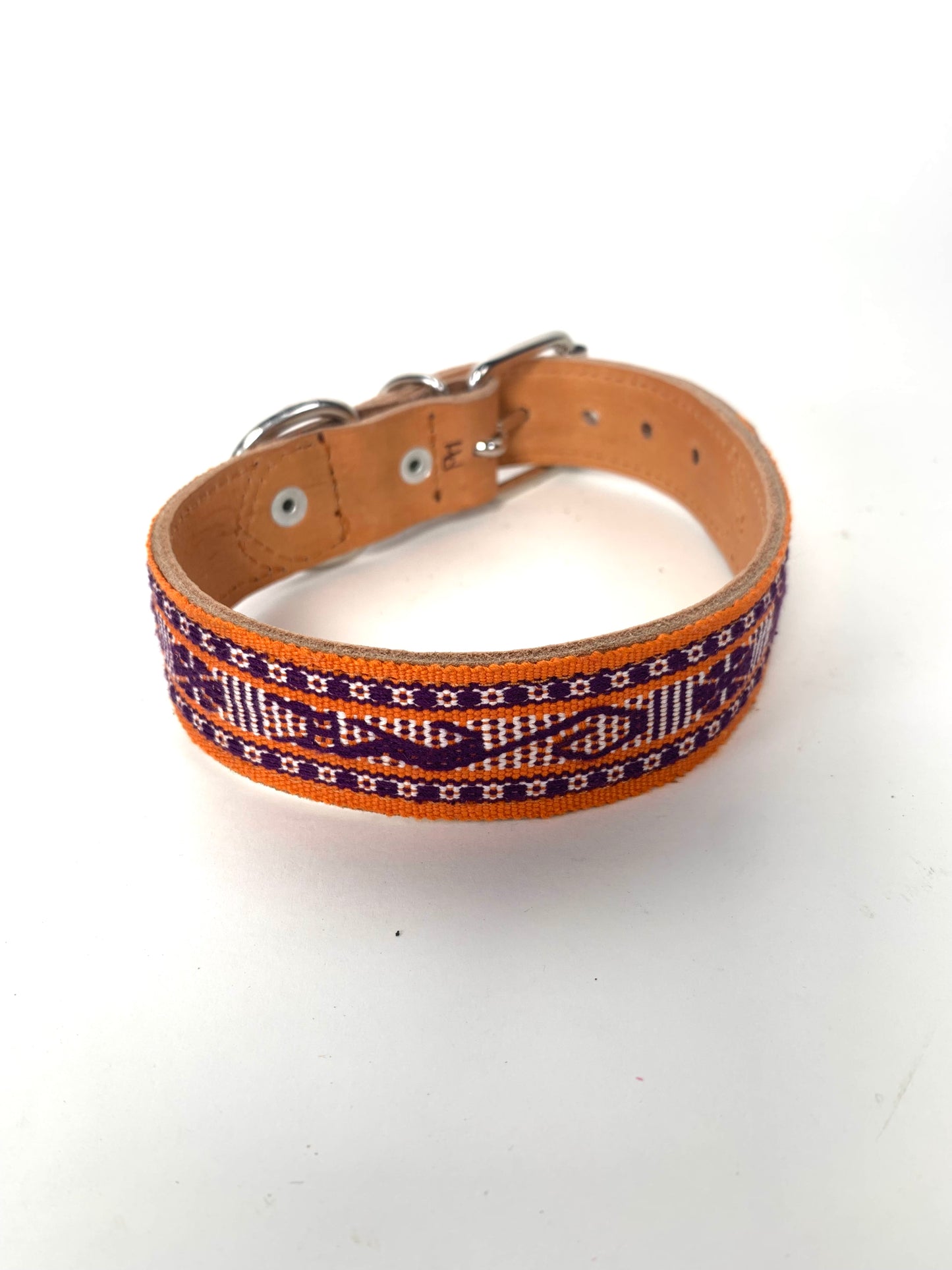 These dog collars and leashes by Ina Chiisi were created in the Valle de Oaxaca, this technique is known as "telar de cintura" and its primary is cotton, which is dyed by natural extracts from plants like nopal, flowers, aloe vera; insects like the grana cochinilla, and fruits like the banana leaf, that the artisans extract and elaborate.